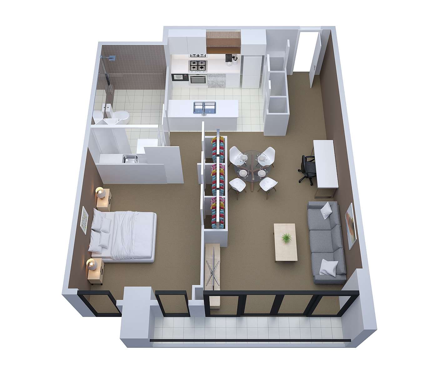 The open-plan living/dining room opens to a balcony that makes the most of the breathtaking city views, and the full-sized kitchen makes cooking at home a pleasure with European stainless steel appliances including dishwasher, breakfast bar, stone bench tops and dedicated pantry.